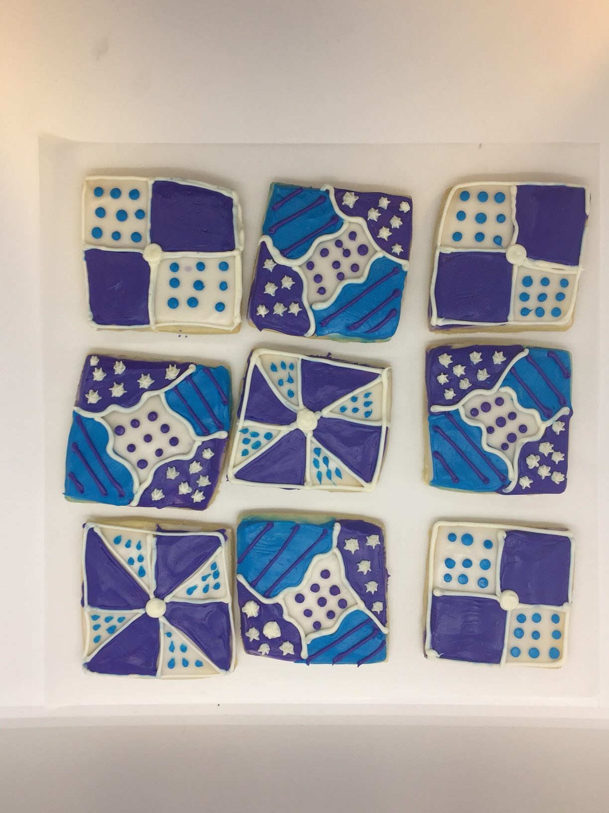 Pick 2 to 3 colors and we’ll design your quilt cookies! All orders may be different as our cookie decorators create from their creativity. If you like a particular pattern, please email us the photo and we’ll do our best to create it!