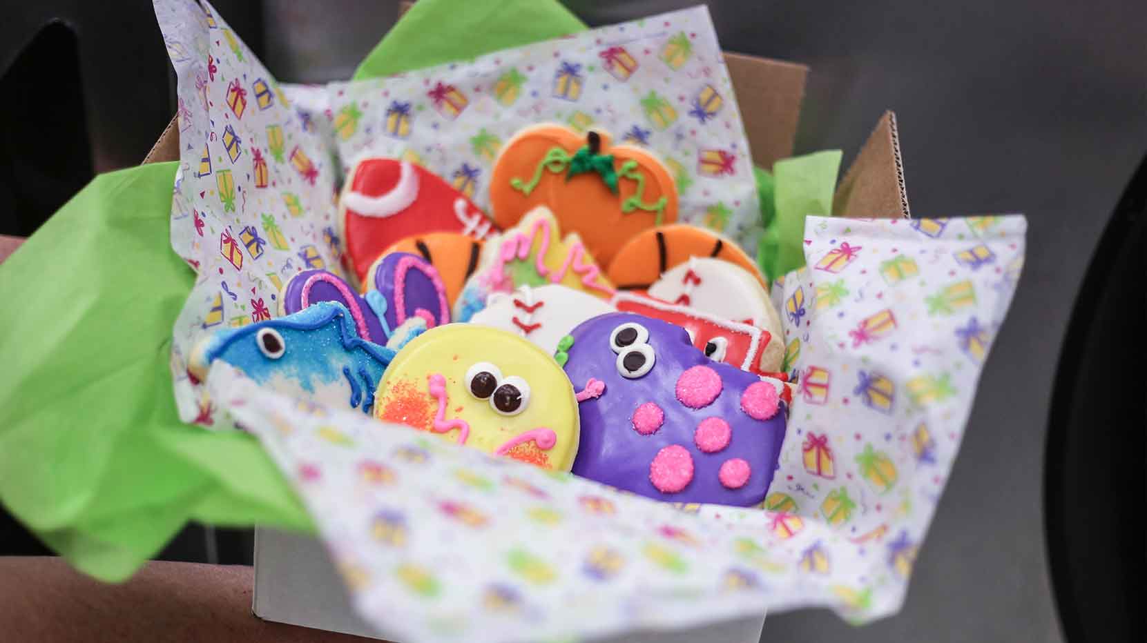 Our famous, and most requested sugar cut – out cookies are made daily and require a 48-hour notice since they are custom designed for you. ( place your order by 12:00 noon CST and it will be shipped within 48 hours.) Should you desire other cookie shapes see ORDER NOTE section under checkout. List quantity and types of cookie flavors. Don’t forget to write your message to be included with your cookie gift.